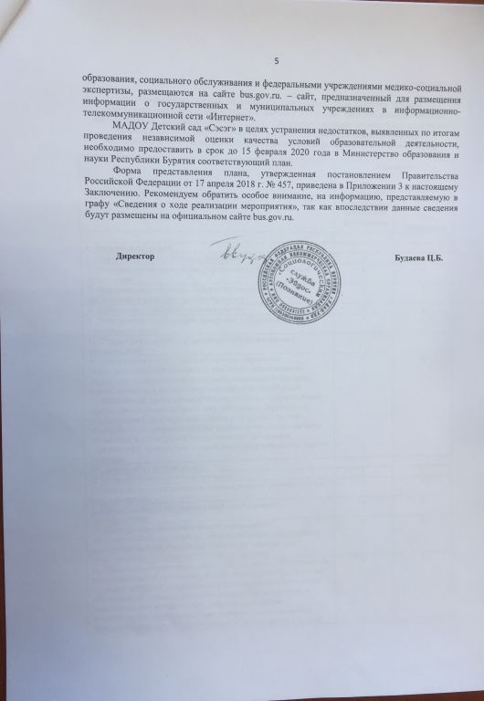 Предписание-РОСОБРНАДЗОР Документ подписан электронной подписью Серийный номер 310227031995278721568419988831218614170173341433 Заведующий Ринчинова Ешима Атановна Дата подписания документа 05.09.2022 13:58:15 (скачать) (посмотреть) (текст документа)